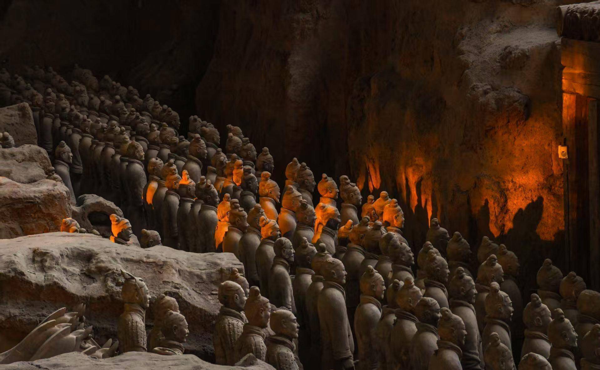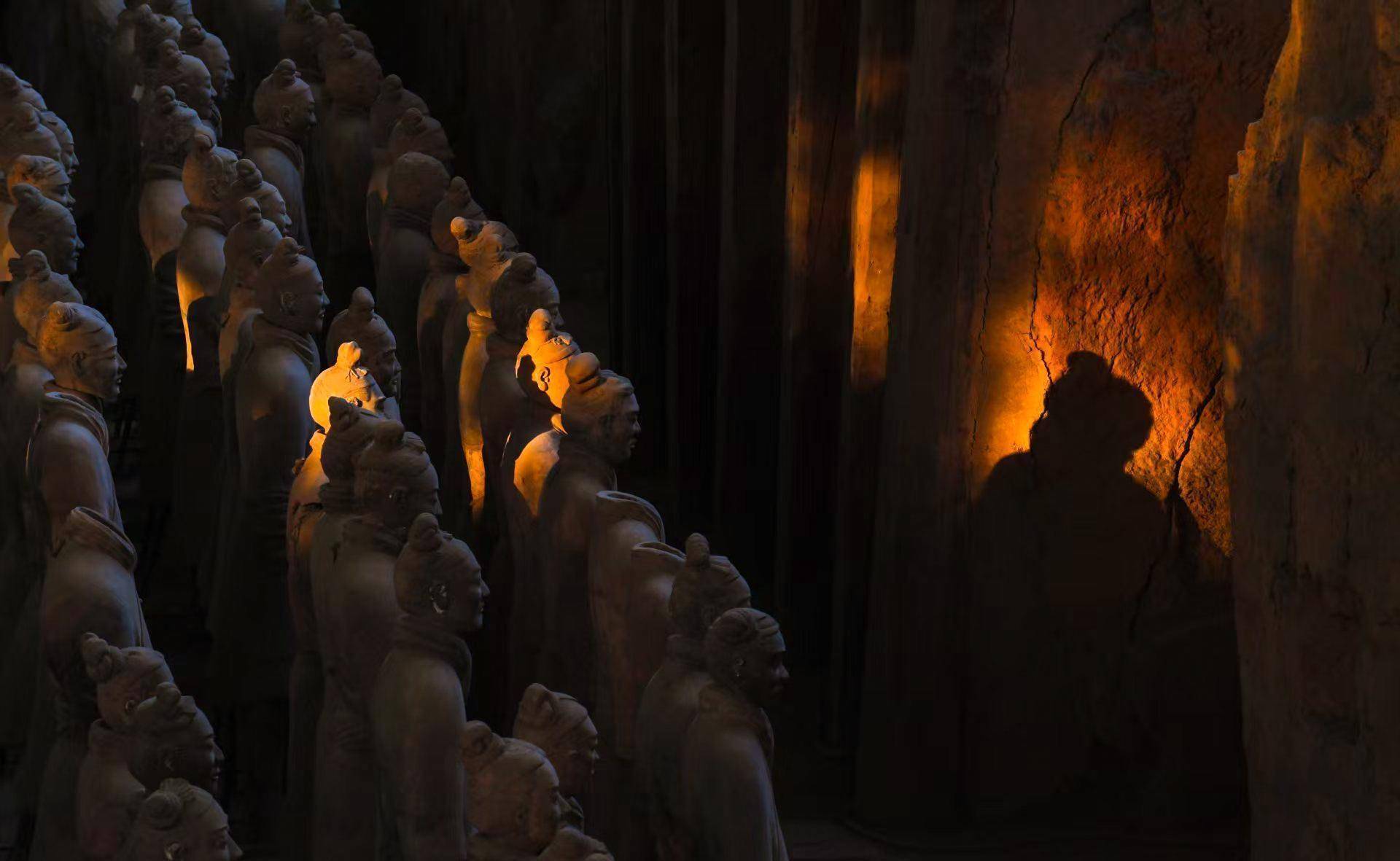 冬至,太阳直射南总结线的极致本领,亦然北半球白天最短、暮夜最长的一天。在这一天,阳光的角度最为歪斜,光芒通过一号坑展厅南侧窗户方可抵达俑坑最远的场地,照亮一尊尊、一滑排戎马俑,呈现出金色的光辉。